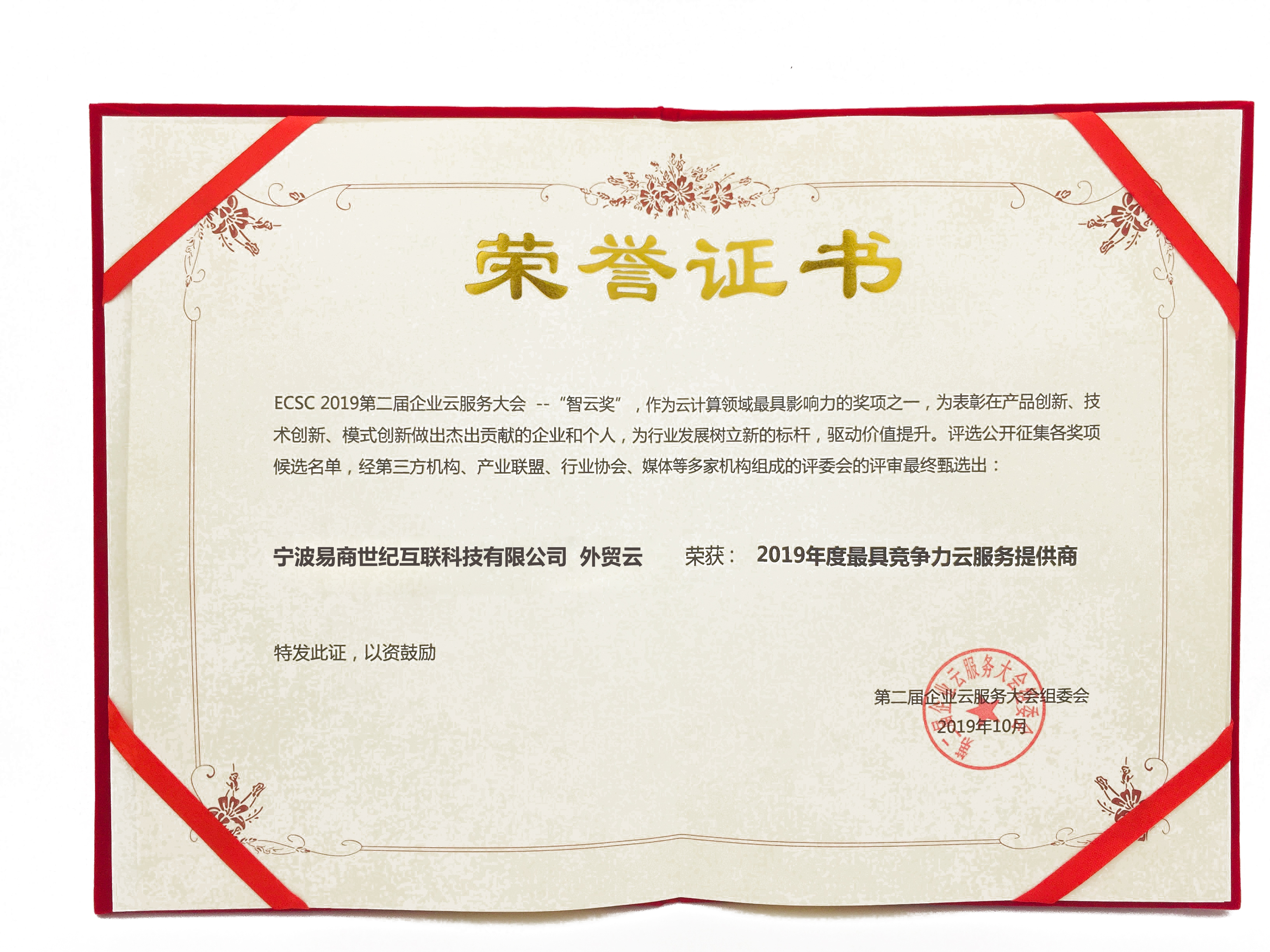 易商互联外贸云荣获“2019年度最具竞争力云服务提供商”