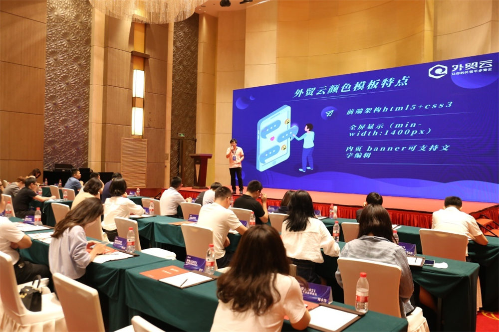 接着是外贸云技术总监杨星先生的精彩分享,杨总在会议上指出通过不断的升级技术,实现页面与功能系统升级,同时对已使用的外贸云手机站点和模板进行升级,不仅更加便捷还更符合国外客户的浏览习惯。