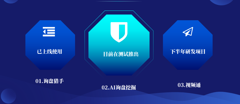 同时杨总还为大家讲解了刚上线的询盘猎手以及即将上线的AI询盘挖掘系统和下半年的研发项目视频通以及B2C商城为外贸企业精准引流及品牌赋能做好铺垫