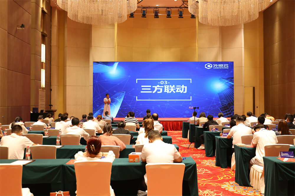 接着来自外贸云全国渠道总监王超先生上台分享,王总本次分享的主题是"渠道赋能,共赢外贸新蓝海"在会议中作了上半年的回顾及下半年渠道规划。