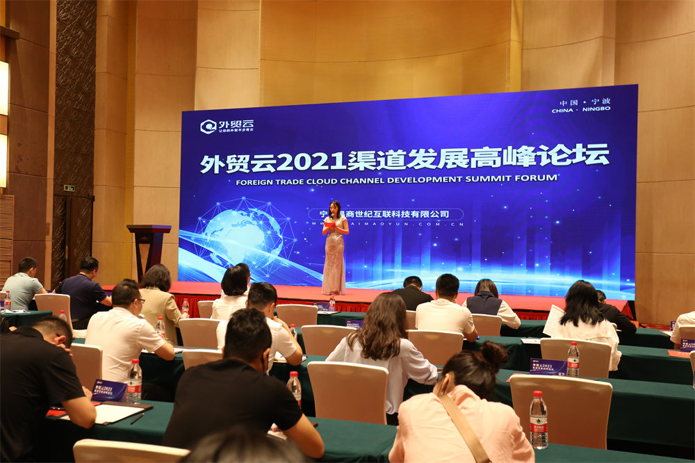 翘首以待、令人企盼 | 外贸云2021渠道发展高峰论坛于宁波阳光豪生大酒店召开。宁波易商世纪互联科技有限公司总裁叶建阳先生、副总裁黄海华女士和来自全国上百位优秀合作伙伴出席了本次盛会。