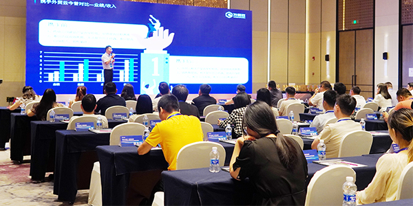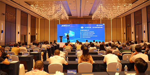 下午场由外贸云全国渠道总监胡总分享主题《聚能量 再启航》。会议中胡总从外贸大环境、易商发展方向、渠道规划、渠道赋能等模块进行了讲解。