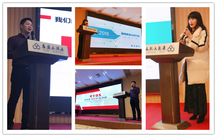 2019年1月19日,易商网络2019年年会在慈溪大酒店隆重举行,总经理、公司管理组及全体员工参加了本次会议。