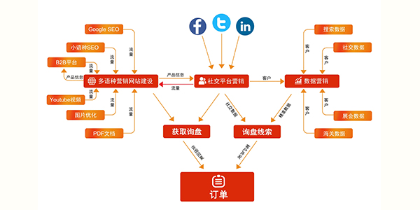 外贸企业在“出海”过程中,面临着客户开发难、语言障碍、推广成本高和数据分析难等多重挑战。要突破这些障碍,企业需要借助数字化工具和智能化解决方案,外贸云外贸智慧营销一站式解决方案,为外贸企业提供多语种智能营销、Google搜索排名靠前、7大主流社交媒体曝光、全球买家大数据挖掘、精准数据分析等智能化、全方位的营销支持,助力企业轻松突破外贸瓶颈,高效开拓全球市场。